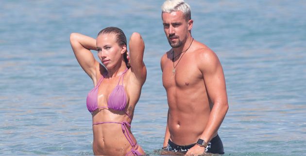 Ο φωτογραφικός φακός της «Espresso» εντόπισε τους δύο ερωτευμένους σε κοσμική παραλία του νησιού ν’ απολαμβάνουν τον ήλιο και τη θάλασσα. Περισσότερο απ’ όλα όμως απόλαυσαν ο ένας τον άλλον με αγκαλιές και «καυτά» φιλιά.