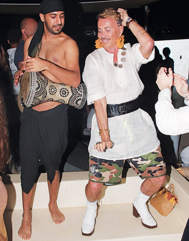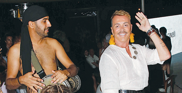❱❱ Ο Λάκης Γαβαλάς ξεσάλωσε στο πάρτι του Roberto Cavalli στη Μύκονο, τιμώντας στιλιστικά την Απω Ανατολή αλλά και τη μαύρη ήπειρο, και ολοκληρώνοντας το look με κρεμαστά σκουλαρίκια! Ο εκκεντρικός μόδιστρος και επιχειρηματίας, που είναι από άλλο ανέκδοτο, επιδόθηκε σε έναν ξέφρενο χορό με solo τουμπερλέκι που έπαιζε για χάρη του ένας μελαχρινός ημίγυμνος μουσικός! Με το απαράμιλλο κέφι και το μπρίο του, δεν σταμάτησε να γελάει και να χορεύει, ξεσηκώνοντας τους celebrities παρευρισκομένους! Ο φωτογραφικός φακός κατέγραψε καρέ καρέ τις χορευτικές φιγούρες του «Mr Lak», χωρίς, φυσικά, να λείπουν και τα κοντινά «κλικ» στο προσφάτως χαραγμένο τατουάζ στο κρανίο του!