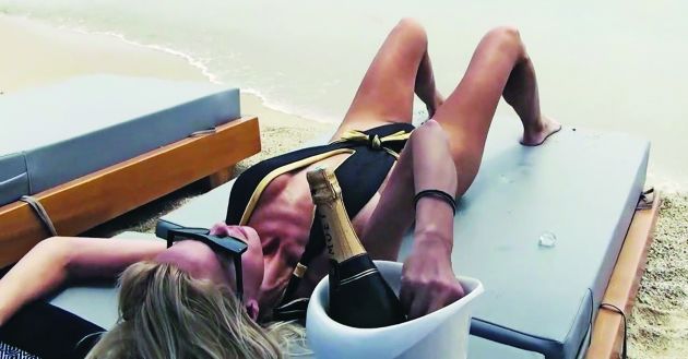 Παγάκια, σαμπάνια, στρινγκ μαγιό, θάλασσα. Ολα τα πιθανά μέσα σε μια γενναία προσπάθεια της μοντέλας να νιώσει υγρή! Να σβήσει με τα παγάκια την κάψα της, που προήλθε και από τη ζέστη, αλλά και από το «καυτό» attitude της, βεβαίως βεβαίως!