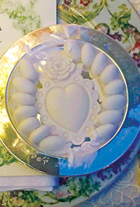 Το ξεχωριστό art de la table διέθετε κάτι από Italian chic με άσπρες και πράσινες ορτανσίες και πορσελάνινα σερβίτσια μεγάλης αξίας από συλλογή αντικών. Οι ασημένιες μπομπονιέρες-κομψοτέχνημα που προσφέρθηκαν στους εκλεκτούς καλεσμένους ήταν του οίκου Κώστα Καίσαρη.