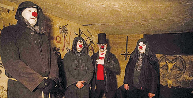 Οι άντρες που μοιάζουν βγαλμένοι από την ταινία τρόμου «It» του Στίβεν Κινγκ απαθανατίστηκαν πρώτη φορά από τον Τσέχο φωτογράφο Ντέιβιντ Τεσίνσκι σε στιγμές λατρείας του Σατανά, σε προάστιο της Πράγας.