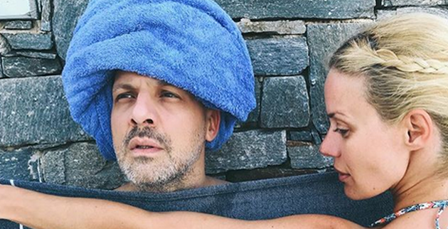 Ο ηθοποιός πόζαρε στο Instagram με τυλιγμένο κεφάλι σαν φακίρης και τη Ζέτα Μακρυπούλια με μια μεγάλη πετσέτα μπροστά του κρύβοντας τα προσόντα του φίλου της από τα αδιάκριτα βλέμματα. Σημειώνεται πως η φωτογραφία τραβήχτηκε στο εξοχικό του Μιχάλη Χατζηγιάννη στην Πάρο.