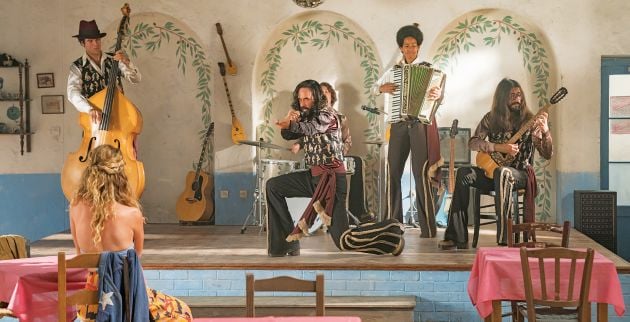 Αγνώριστος, με μακριά μαλλιά και παντελόνι καμπάνα, ο Πάνος Μουζουράκης συμμετέχει στο πρίκουελ της ταινίας «Mamma Mia!» (η Λίλι Τζέιμς ενσαρκώνει τη Μέριλ Στριπ σε μικρή ηλικία), που βγαίνει στις αίθουσες την Πέμπτη!