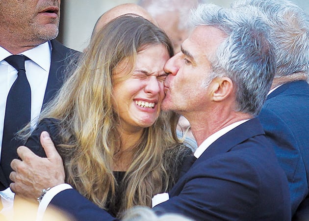 Για να συμπαρασταθούν στην καλή τους φίλη βρέθηκαν στη Μητρόπολη η Ελλη Στάη, μια σχέση που κρατά από τα σχολικά χρόνια στο Αρσάκειο του Ψυχικού, η Αγάπη Πολίτη και η Αννα Νταλάρα. Με δάκρυα στα μάτια αποχαιρέτησε τον αγαπημένο της θείο και η Σοφία Κόκκαλη, κόρη του Πέτρου Κόκκαλη από τον γάμο του με την Ελενα Σκουλά, στο πλευρό του οποίου στεκόταν η σύντροφός του, ηθοποιός Δήμητρα Ματσούκα.