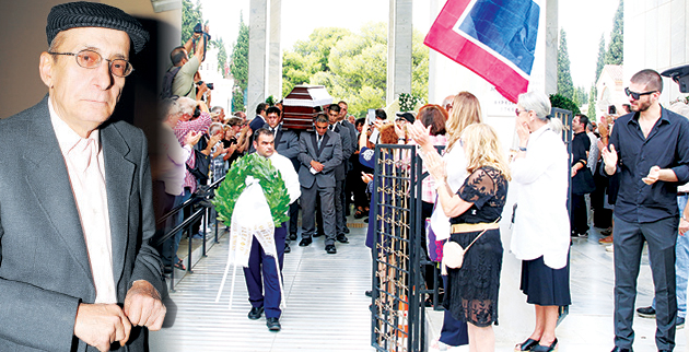 Στην πολιτική κηδεία του, που τελέστηκε χθες από το Α’ Νεκροταφείο, συγκεντρώθηκαν οι συγγενείς του -με έντονη την παρουσία της αδελφής του Λιλής, που δεν μπορούσε να κρύψει τη οδύνη της-, αλλά και ποιητές, πεζογράφοι, συνθέτες, τραγουδιστές, ηθοποιοί και εκπρόσωποι της κυβέρνησης και της πολιτικής γενικότερα, για να του πουν το τελευταίο «αντίο».