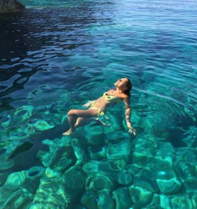 Σε μία από αυτές η εγγονή της Μαριάννας Βαρδινογιάννη πόζαρε με ένα λευκό μαγιό, με φόντο το Αιγαίο, και τίποτα επάνω της δεν πρόδιδε ότι γέννησε πριν από λίγους μήνες.