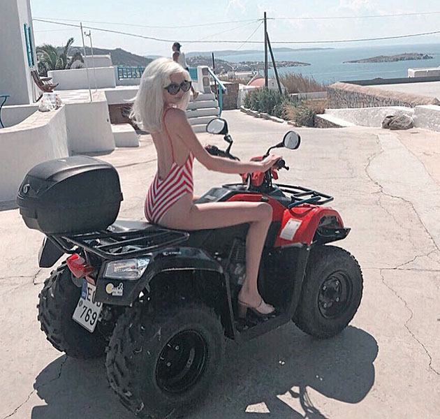 Φωτογραφίες δίπλα σε πισίνες, μέσα σε τζακούζι, σε αναπαυτικές ξαπλώστρες δίπλα στο κύμα, ακόμη και πάνω σε «γουρούνες» με outfit παραλίας. Το περίεργο, βέβαια, είναι ότι στις περισσότερες αναρτήσεις της ποζάρει μονάχη, σαν… καλαμιά στη Μύκονο. Γιατί, άραγε, δεν μας αποκαλύπτει την ταυτότητα του ανθρώπου που τη φωτογραφίζει κάθε τρεις και λίγο; Τι φοβάται; Μην της τον ματιάσουν;