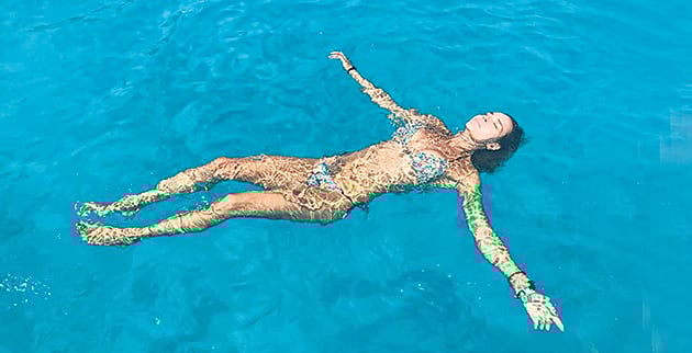 Ο άντρας της (προφανώς και φωτογράφος της) την απαθανάτισε επίσης μέσα στη θάλασσα, την ώρα που χαλάρωνε ξαπλωμένη ανάσκελα στο νερό, με κλειστά τα μάτια, σε απόλυτη χαλάρωση.