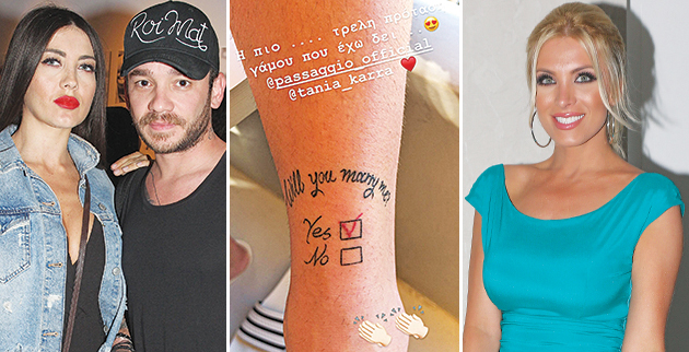 Η οικοδέσποινα της εκπομπής του epsilon TV «Φτιάξε καφέ να στα πω» έσπευσε να δημοσιεύει το «ντοκουμέντο» που κρατούσε στο κινητό της, προκειμένου να έχει την αποκλειστικότητα. Ποιο ήταν αυτό; Μα, η πρωτότυπη πρόταση γάμου που έκανε ο επιχειρηματίας στην αγαπημένη του. Τη «χτύπησε» τατουάζ στο πόδι του με «τσεκαρισμένη» τη θετική απάντηση της Τάνιας και την Κατερίνα να… παραφυλάει για τη φωτογραφία, την οποία ανέβασε στα stories του λογαριασμού της στο Instagram. «Η πιο τρελή πρόταση γάμου που έχω δει» σχολίασε η ίδια μετά την ανακοίνωση του χαρμόσυνου μαντάτου, ούσα και η ίδια πολύ χαρούμενη για το «λαβράκι» που έπιασε στις διακοπές της. Βεβαίως, η Τάνια Καρρά είναι φίλη της και είχε αυτό που λέμε «εσωτερική πληροφόρηση» για το ρεπορτάζ! Σημειώνεται ότι η τραγουδίστρια, που θα ντυθεί νυφούλα, κυοφορεί τον καρπό του έρωτά της με τον Κωνσταντίνο Σπηλιωτόπουλο. Θέλετε και το καλύτερο; Τα μαντάτα για τον «πελαργό» τα είχε… προλάβει στα social media μια άλλη φίλη της, η Τζο Λαζοπούλου.