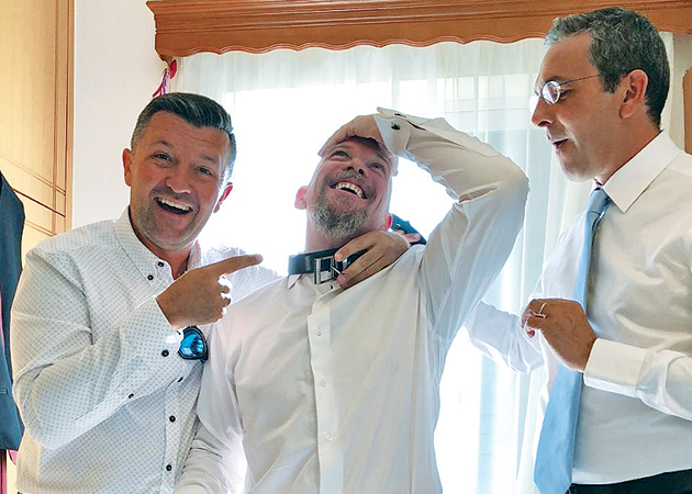 Σ’ αυτό βοήθησαν οι συνάδελφοι του γαμπρού, που ταξίδεψαν μέχρι τα Γιάννενα για να βρεθούν στο πλευρό του. Ανάμεσά τους η Ρίτσα Μπιζόγλη, ο Δημήτρης Μάρκος, ο Στράτος Μπαλής, ο Γιώργος Γρηγοριάδης, ο Ισαάκ Καρυπίδης, ο Δημήτρης Περγελής κ.ά., οι οποίοι δεν σταμάτησαν λεπτό να τον πειράζουν.