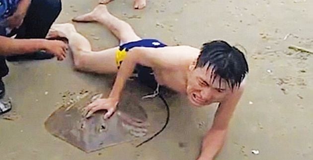 H άμμος βράχηκε από δάκρυα και αντί για το κύμα ακουγόταν σπαραγμός από έναν άτυχο λουόμενο στην Κίνα, καθώς σαλάχι τρύπησε με την ουρά του τα γεννητικά του όργανα. Οι σπαραχτικές αντιδράσεις του άγνωστου άνδρα, ο οποίος είχε πάει για μπάνιο μια ηλιόλουστη μέρα στην παραλία της Σάνια, στην επαρχία Χαϊνάν, καταγράφηκαν από άλλον λουόμενο σε βίντεο, το οποίο έχει γίνει viral καθώς έχει ξεπεράσει κατά πολύ τις 5.000.000 θεάσεις.