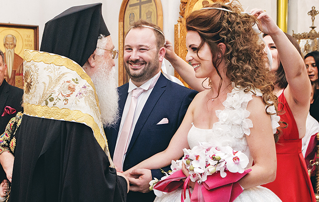 Το ζευγάρι ενώθηκε με τα ιερά δεσμά του γάμου στην εκκλησία του Αγίου Φανουρίου, στον Ωρωπό, με κουμπάρες τις παιδικές φίλες της νύφης Στεφανία Σπηλιώτη και Εφη Ρεγκούτα.