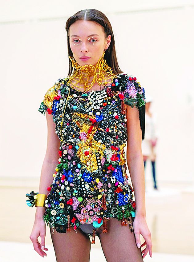 Μαλλί, δαντέλα, ξύλο, μαργαριτάρια, κρύσταλλοι είναι μερικά από τα υλικά που χρησιμοποιεί, υπογράφοντας δημιουργίες που επιλέγουν συχνά οι εγχώριοι celebrities, ενώ τούτη τη φορά είχαν την ευκαιρία να τις θαυμάσουν και οι Βρετανοί.