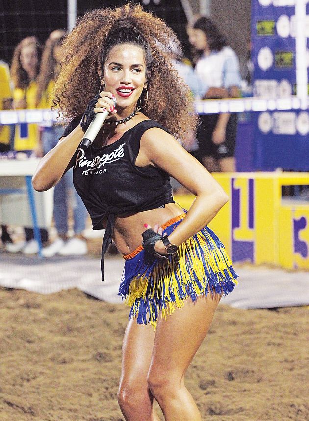 Η τραγουδίστρια έβγαλε τις ζαρτιέρες και τα εσώρουχα που φόρεσε λίγες μέρες πριν για το… back to school party στη λακωνική πρωτεύουσα και φόρεσε τη χαβανέζικη φούστα της για το σόου που παρουσίασε με την ολοκλήρωση του τελικού.