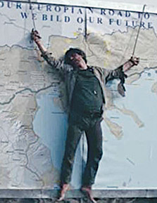 Η πιο προκλητική σκηνή του «Mocking of Christ», που αποτελεί και την «αιχμή του δόρατος» εναντίον της ελληνικής επικράτειας, είναι όταν ο κεντρικός ήρωας, ένας διάσημος Γάλλος δημοσιογράφος πολιτικού περιοδικού με το όνομα Αλέξανδρος Φιλιππόπουλος, βρίσκεται δολοφονημένος και κρεμασμένος στην οδική ταμπέλα ενός υπό κατασκευή αυτοκινητόδρομου στη βόρεια Ελλάδα που -κατά την υπόθεση του έργου- «χωρίζει τη Μακεδονία στα δύο».