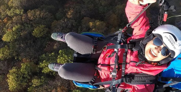 Η δημοφιλής τραγουδίστρια έκλεισε τα 64 και ανέβασε την αδρεναλίνη της κάνοντας παραπέντε στις Ελβετικές Αλπεις! «Να πετάς πολύ ψηλά, στην ησυχία των βουνοκορφών, να σε διαπερνά ο παγωμένος αέρας των Αλπεων, να θαυμάζεις πανοραμικά τη θέα, να σου κόβεται η ανάσα από την ομορφιά της φύσης και τα έξοχα χρώματα της γης του φθινοπώρου, παρέα με έναν τεράστιο πραγματικό βασιλικό αετό (δίπλα μας, να κοιτάει). Ναι, τα ξεχνάς όλα.