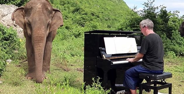 Oπως εξηγεί ο «γητευτής» των ελεφάντων, πολλοί από αυτούς πλησιάζουν στο πιάνο ή λικνίζουν την προβοσκίδα τους στον ρυθμό της μελωδίας του.