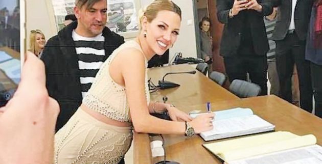 Το ζευγάρι ανέβηκε τα σκαλιά του δημαρχείου στον Αγιο Δημήτριο σε στενό οικογενειακό κύκλο, με μάρτυρες τον pr man Μάνο Κατσαμπούρη, ο οποίος είναι κολλητός της νύφης, και έναν καλό φίλο του γαμπρού Δημήτρη. Θα κάνουν θρησκευτικό γάμο μαζί με τη βάφτιση της κόρης τους μέσα στο 2019.