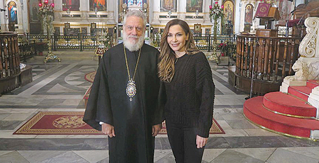 ❱❱ Ντυμένη απλά και με τον δέοντα σεβασμό, η Δέσποινα Βανδή επισκέφθηκε τον Καθεδρικό Ναό Αγίου Νικολάου στη Σύρο.Η τραγουδίστρια είχε την τύχη να ξεναγηθεί από τον σεβασμιότατο κ. Δωρόθεο Β’ (φωτό), ο οποίος την καλωσόρισε και της παρείχε πληροφορίες για τον ναό, που θεμελιώθηκε το 1848. Η Δέσποινα βρέθηκε στην «αρχόντισσα των Κυκλάδων» για τα γυρίσματα της ταξιδιωτικής εκπομπής που ετοιμάζει στο Open για το δεύτερο μισό της σεζόν.