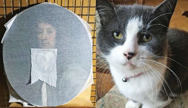 Η Παντμέ ανέλαβε να «φιλοτεχνήσει» τον πίνακα του Τζον Μάικλ Ράιτ, κάνοντας με τα νύχια της μια τρύπα ακριβώς στο κέντρο του καμβά. «Μόλις έκανα μερικά βήματα πίσω για να θαυμάσω τη δουλειά που έκανα, πήδηξε προς τα πάνω του η γάτα μου και προσγειώθηκε βίαια ακριβώς στο κέντρο που πίνακα» δήλωσε ο Γκρόσβενορ, ο οποίος είχε αγοράσει το 2015 τον σπάνιο πίνακα αντί σχεδόν 6.000 ευρώ.