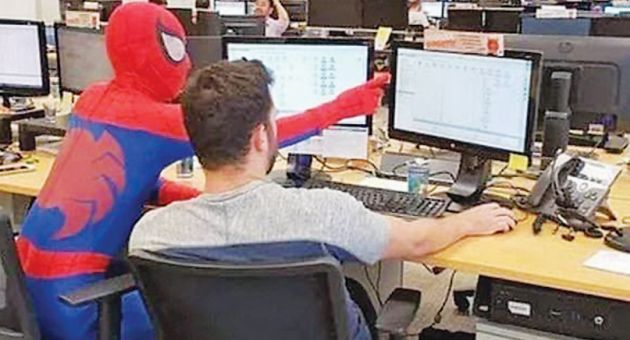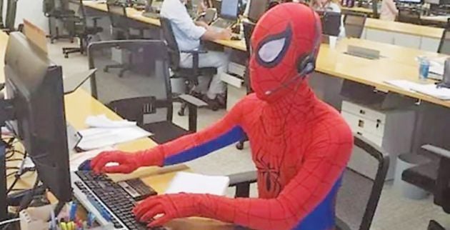 ❱❱ Αλλοι θέλουν φεύγοντας να αφήνουν συντρίμμια. Αλλοι, πάλι, γέλιαΥπάλληλος τράπεζας στο Σάο Πάολο, που δήλωσε την παραίτησή του, αποφάσισε να περάσει την τελευταία μέρα του στο γραφείο ντυμένος Spider-Μan!