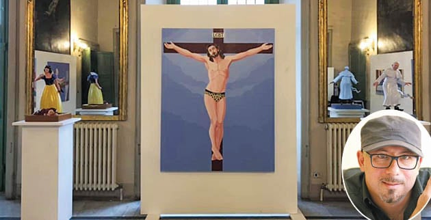❱❱ Οργή για το έργο Ιταλού ζωγράφουΚαθένας πλέον φαίνεται πως μπορεί να κάνει ό,τι θέλει -ακόμη και να γίνεται βλάσφημος- και να το ονομάζει «έργο τέχνης», αν τουλάχιστον κρίνει κανείς από πίνακα Ιταλού καλλιτέχνη που απεικονίζει τον Ιησού με λεοπάρ εσώρουχο πάνω στον σταυρό.