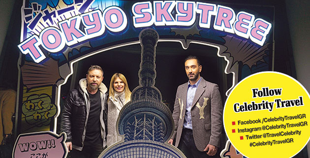 Επόμενος σταθμός, το Tokyo Sky Τree, ο ψηλότερος πύργος του κόσμου με ύψος 160 μ. και… Βραβείο Guinness! Ο Νίκος Κοκλώνης και οι φιλοξενούμενοί του απόλαυσαν την πανοραμική θέα της μεγαλούπολης από τα παρατηρητήρια, θαυμάζοντας την αρχιτεκτονική του κτιρίου, την τεχνολογία, τα εστιατόρια, το ενυδρείο και το πλανητάριο που στεγάζονται στο εσωτερικό του. O «Mr Celebrity Travel», γνωστός για τις εκπλήξεις του, συνόδευσε το ζευγάρι σε περίεργα μπαρ όπου οι πελάτες χαλαρώνουν παίζοντας με κουκουβάγιες ή χαϊδεύοντας γάτες! Φιλόζωοι και οι τρεις, δεν έχασαν την ευκαιρία για… γιαπωνέζικα γουργουρίσματα και ζεστές μαλακές αγκαλιές με τα συμπαθητικά τετράποδα.