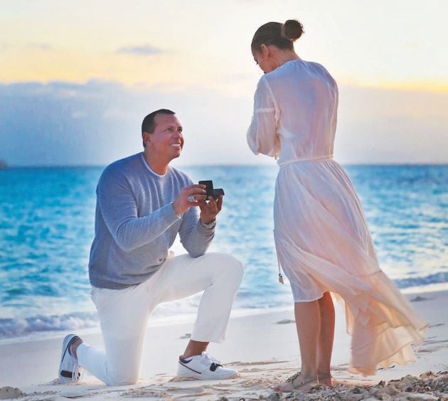 ❱❱ Τη στιγμή που ο Αλεξ Ροντρίγκεζ τής έκανε πρόταση γάμου σε παραλία στις Μπαχάμες……το περασμένο Σάββατο μοιράστηκε με τους διαδικτυακούς φίλους της η Τζένιφερ Λόπεζ αναρτώντας φωτογραφίες στο Instagram. Στην πρώτη ο πρώην παίκτης του μπέιζμπολ γονατίζει μπροστά της, προσφέροντάς της το εντυπωσιακό μονόπετρο, αξίας περίπου 4.440.000 ευρώ. Η JLo φαίνεται να μην το πιστεύει, καθώς καλύπτει το στόμα της με το χέρι της.