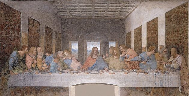 Ο «Μυστικός Δείπνος», που κοσμεί την τραπεζαρία του μοναστηριού Παναγία της Χάριτος στο Μιλάνο, αναπαριστά το τελευταίο δείπνο του Ιησού με τους 12 μαθητές Του, όπως περιγράφεται στη Βίβλο.