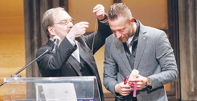 Χαμογελαστός με το βραβείο του ο Μιχάλης Συριόπουλος