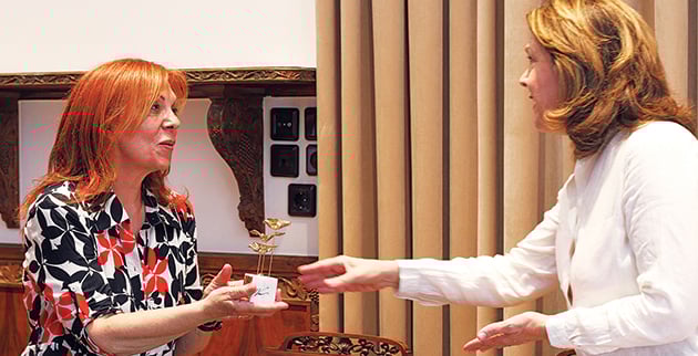 Παραλαμβάνοντας από τη δήμαρχο Ζωγράφου βραβείο για την προσφορά της