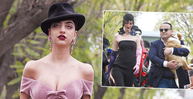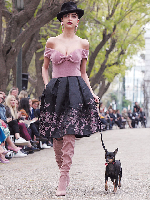 Στην υπαίθρια πασαρέλα του Ζαππείου η Ειρήνη Καζαριάν κρατώντας ένα αδέσποτο σκυλάκι