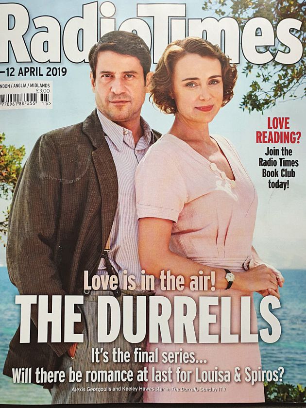 Ενα εξώφυλλο που φανερώνει -αν μη τι άλλο- την ερωτική χημεία που υπάρχει ανάμεσα στους δύο πρωταγωνιστές της δημοφιλούς σειράς «The Durrells» («Οικογένεια Ντάρελ»), η οποία προβάλλεται από το βρετανικό κανάλι ITV σημειώνοντας ρεκόρ τηλεθέασης. Το σίριαλ έχει πωληθεί σε ΗΠΑ, Αυστραλία, Καναδά, Νέα Ζηλανδία, Γερμανία και σε άλλες χώρες, ενώ ο τέταρτος και τελευταίος κύκλος του, που έκανε πρεμιέρα την περασμένη Κυριακή και στην Ελλάδα και προβάλλεται από την Cosmote TV, κρύβει πολλές εκπλήξεις.
