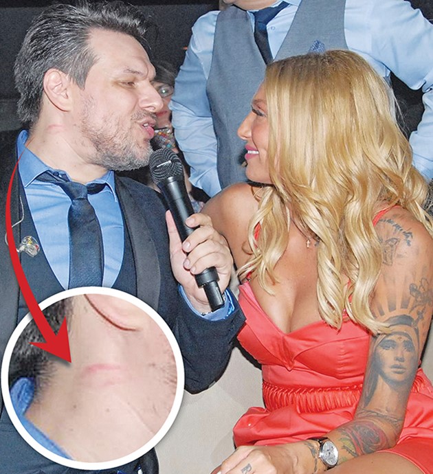 Στη συνέχεια οι δυο τους είπαν παρέα κι ένα τραγουδάκι, με τα γαρίφαλα να πέφτουν… βροχή! Λεπτομέρεια που κατέγραψε ο φακός: τα σημάδια από κόκκινα χείλη στον λαιμό του δημοφιλούς καλλιτέχνη.