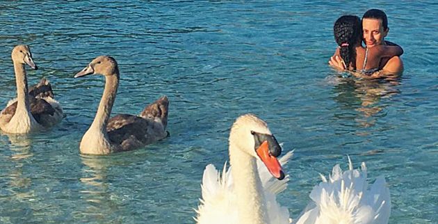 Η ηθοποιός, που κάνει διακοπές με τον σύζυγό της Σίμο Σαρκετζή και την κόρη τους, δημοσίευσε μια τρυφερή φωτογραφία της στη θάλασσα αγκαλιά με τη μικρή, δίπλα σε δύο πάπιες και έναν κύκνο.