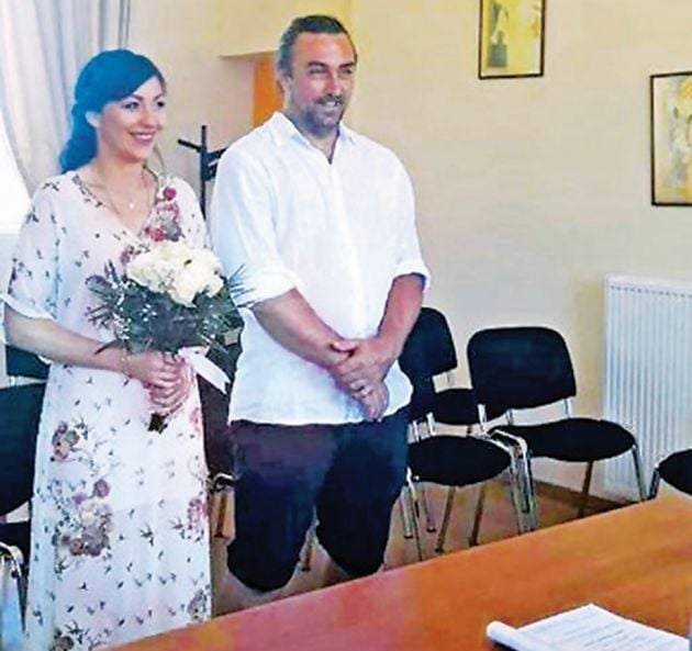 Στις φωτογραφίες που κυκλοφόρησαν, ο Ιβάν ποζάρει στο δημαρχείο χαμογελαστός, φορώντας λευκό πουκάμισο και μπλε βερμούδα, ενώ η νύφη δίπλα του δείχνει ευτυχισμένη μέσα στο φλοράλ λευκό μακρύ φόρεμά της.
