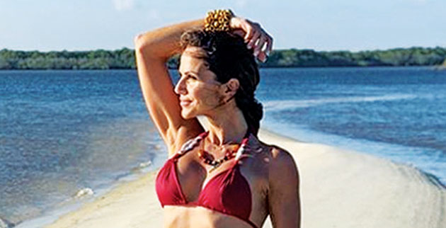 Με φόρμα, με μαγιό, αλλά και με τζιν σορτσάκι, αν χρειαστεί, η yoga instructor δεν… μασάει. Επιδεικνύει την ευλυγισία της συνοδεύοντας κάθε πόζα και με ένα απόφθεγμα.