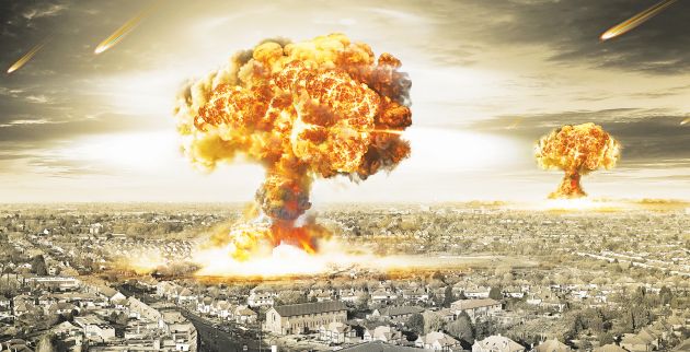Δεύτερο κατά σειρά σενάριο, βάσει των πιθανοτήτων υλοποίησής του, είναι ένας πυρηνικός πόλεμος. «Παραμένει μεγάλη η ανησυχία, η οποία τα τελευταία χρόνια έχει αυξηθεί κι άλλο, καθώς οι ΗΠΑ υπό τον Τραμπ και η Ρωσία υπό τον Πούτιν έχουν κατά κάποιον τρόπο αποτραβηχτεί από τις διεθνείς συνθήκες αναφορικά με τα οπλικά συστήματα» εξηγεί ο Γουόλς, προσθέτοντας ότι μπροστά σε ένα τέτοιο ενδεχόμενο η ανθρωπότητα δεν μπορεί να κάνει πολλά.