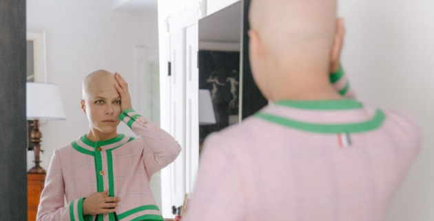 Στη φωτογραφία που ανέβασε η ίδια στο Instagram, με τη λεζάντα «πορτρέτο μιας κυρίας», διακρίνονται τα γυμνά της οπίσθια και το γυμνό από μαλλιά κεφάλι της, το οποίο ακουμπά με το χέρι της.