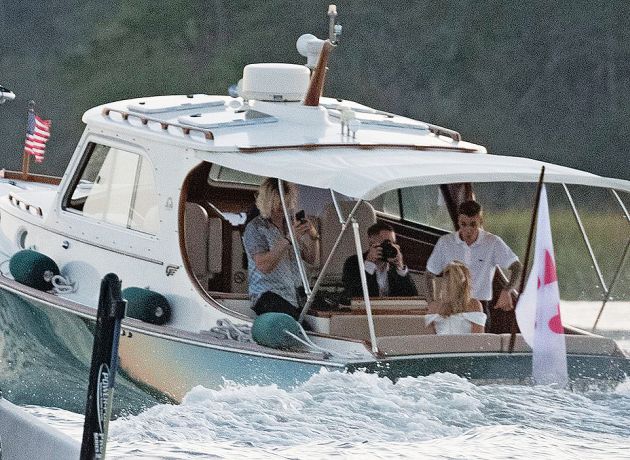 Οι μελλόνυμφοι και οι προσκεκλημένοι τους έφτασαν εκεί με βαρκούλες στολισμένες με σημαίες που είχαν κόκκινες καρδιές, συνοδεία σκαφών του λιμενικού, προκειμένου να κάνουν τη γαμήλια πρόβα, ως είθισται, και να συνεχίσουν τη βραδιά τους με ένα χαλαρό κοκτέιλ εν όψει της χθεσινής γαμήλιας τελετής.