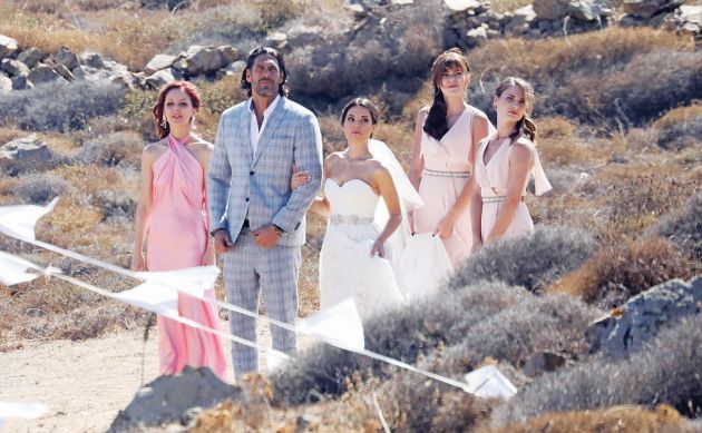 Τα πλάνα τραβήχτηκαν στο γραφικό εκκλησάκι του Αγίου Σώστη και δείχνουν τον ευτυχή «μπαμπά» Γιάννη Σπαλιάρα να συνοδεύει την κόρη του Ειρήνη (Χριστίνα Σωτηρίου) νύφη και να την παραδίδει στον γαμπρό (Ρομπέρτο Ρομάνο), σε έναν γάμο παραδοσιακό, νησιώτικο, σύμφωνα με το σενάριο.