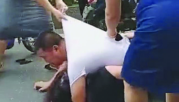 Η σύζυγος, όπως φαίνεται σε βίντεο που κάνει τον γύρο του διαδικτύου, συνοδευόταν από εξαγριωμένες φίλες της, οι οποίες έριξαν κάτω την ερωμένη σε δρόμο πόλης της κινεζικής επαρχίας του Ανχουέι. Η σύζυγος της τραβούσε τα μαλλιά και για να την εξευτελίσει, της έσχιζε τα ρούχα.