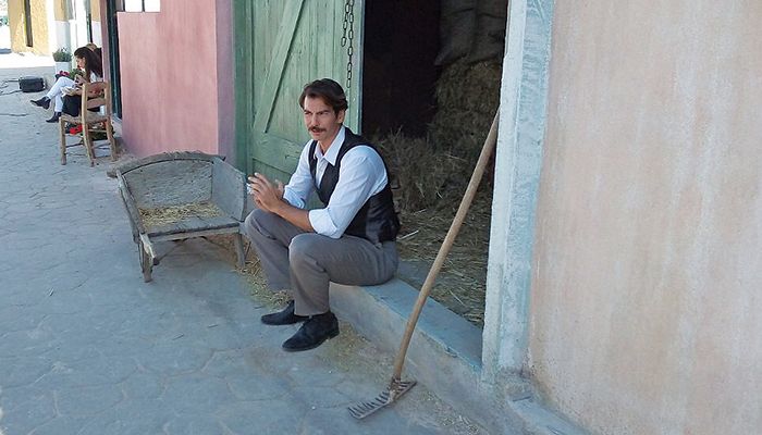 Εκεί συναντήσαμε και τον παραγωγό Γιάννη Καραγιάννη. «Το χωριό που στήσαμε στα Σπάτα μαζί με το πλατό των 800 τετραγωνικών μέτρων, όπου βρίσκονται τα εσωτερικά των σπιτιών, κοστίζει 2.000.000 ευρώ. Αλλά δεν χρησιμοποιούμε μόνο αυτό τον χώρο. Το σπίτι των αδελφών Σταμίρη με τις λεύκες βρίσκεται στον εξωτερικό χώρο των στούντιο της Finos Film, στα Σπάτα, σε μια έκταση ενός στρέμματος. Τα πλάνα που βλέπετε με τα χωράφια είναι από τη Λιβαδειά και την Κωπαΐδα» μας αποκαλύπτει φανερά υπερήφανος.