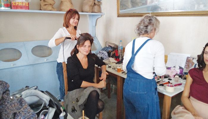 Η Θεοφανία Παπαθωμά ενώ της φτιάχνουν τα μαλλιά της