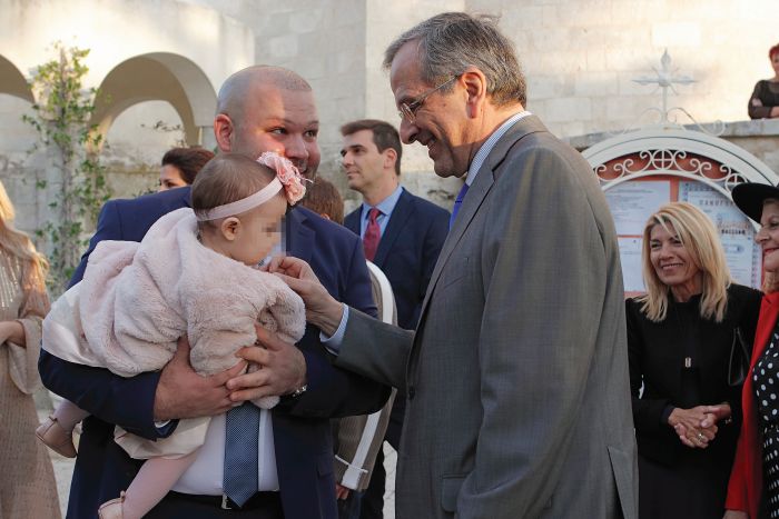 Το μυστήριο τελέστηκε χθες στις 5 το απόγευμα στον Ιερό Μητροπολιτικό Ναό Αγίων Κωνσταντίνου και Ελένης στη Γλυφάδα, με νονούς τους Μιλτιάδη Βαρβιτσιώτη, Δημήτρη Κιούση και Χριστιάνα Παπαγεωργάκη, όλοι τους φίλοι του ζευγαριού.