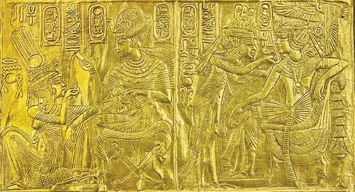 Η χρυσή αποτύπωση της Ανχεσεναμούν με τουνίκ και το χαρακτηριστικό φιδίσιο στέμμα