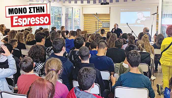 Ο Λάκης μίλησε επίσης με τον ιδιοκτήτη του εκπαιδευτηρίου και τους καθηγητές, ενώ δεν έλειψαν και οι αναμνηστικές φωτογραφίες με τα πλήθη των ενθουσιασμένων μαθητών, που συγκεντρώθηκαν γύρω από τον δημοφιλή καλλιτέχνη.