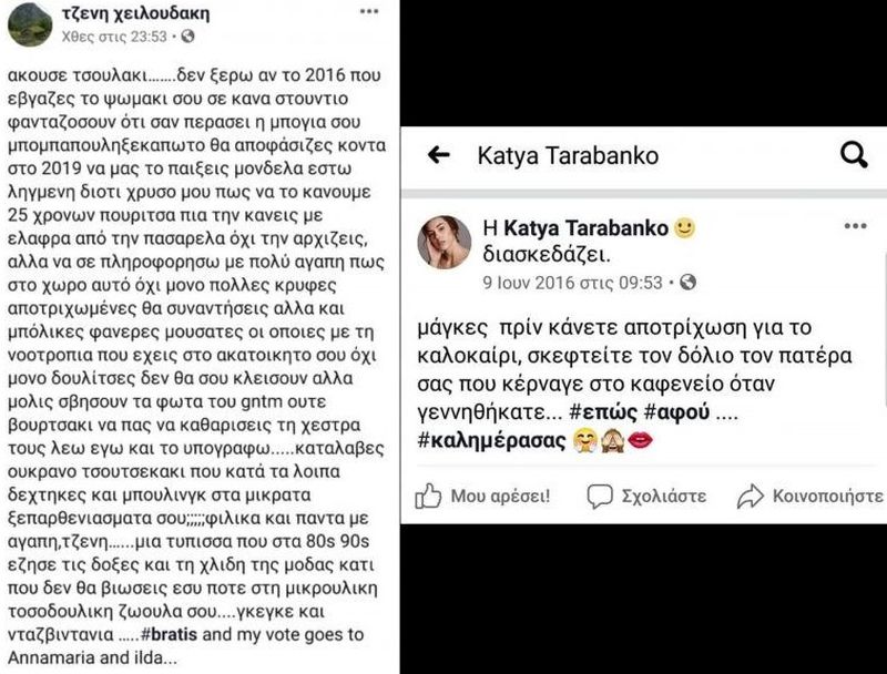 Ήταν Ιούνιος του 2016 όταν η Κάτια έγραψε στον τοίχο της στο facebook το ακόλουθο σχόλιο: «Μάγκες, πριν κάνετε αποτρίχωση για το καλοκαίρι, σκεφτείτε τον δόλιο τον πατέρα σας που κέρναγε το καφενείο όταν γεννηθήκατε». Άγνωστο πώς, αλλά η Τζένη Χειλουδάκη ενημερώθηκε για το εν λόγω post. Το κοινοποίησε, λοιπόν, στον δικό της λογαριασμό στο facebook κι έπειτα… πήρε φόρα.