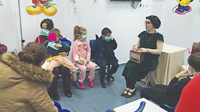 Η ηθοποιός Αγγελική Φράγκου υποδύεται τη «θεία Λένα» και μοιράζει χαμόγελα σε άρρωστα παιδάκια στους θαλάμους των παιδιατρικών κλινικών της Αττικής.