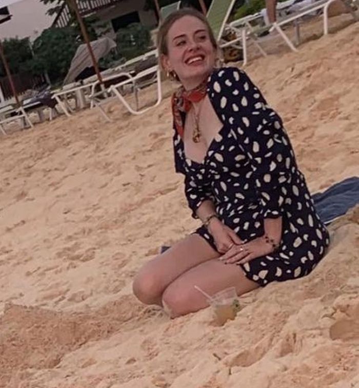 Η Αντέλ, που έχει μείνει μισή, ποζάρει στην παραλία